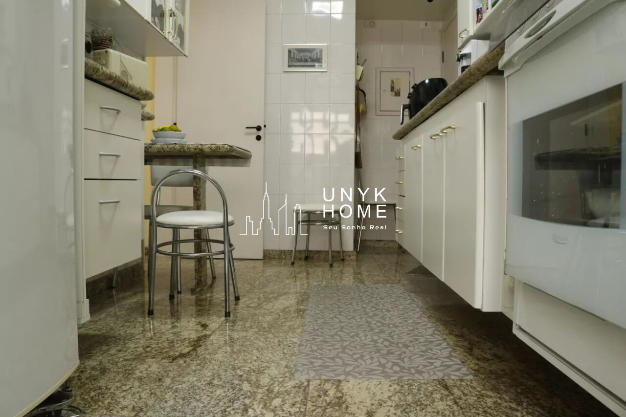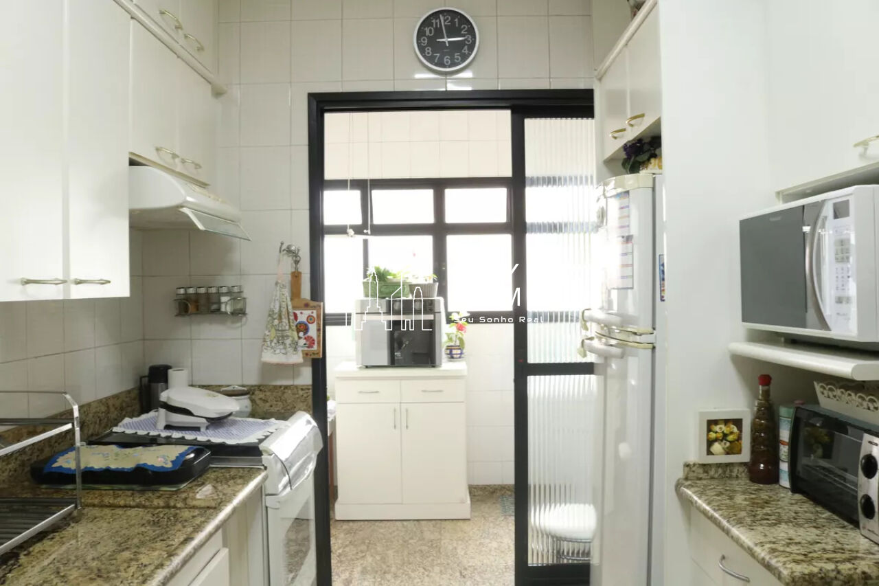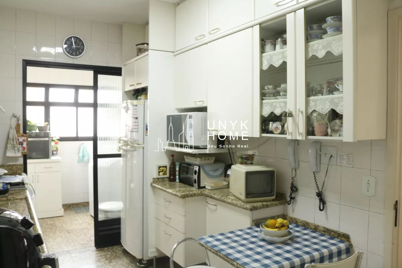 A cozinha é ampla e independente, com armários planejados, e conta também com área de serviço separada, proporcionando maior praticidade no dia a dia.