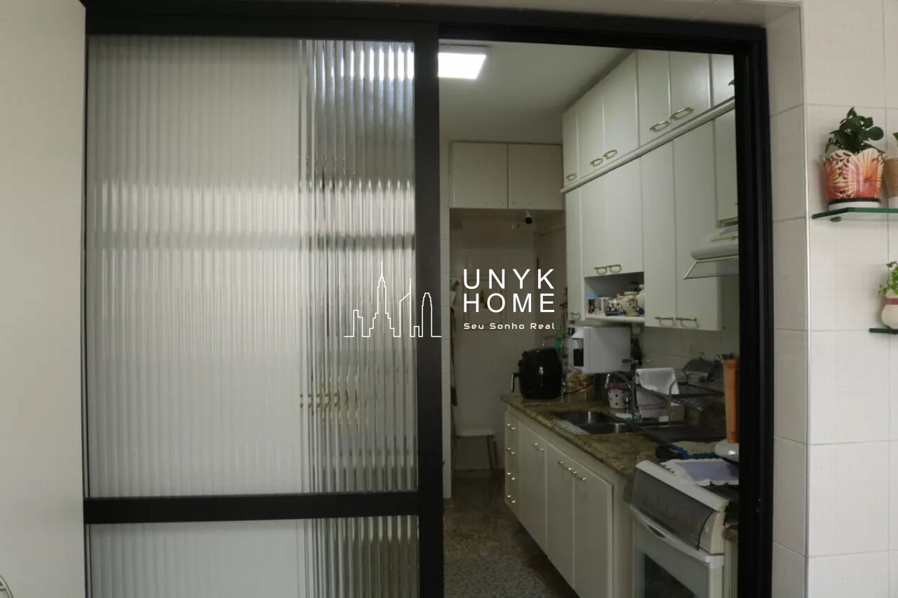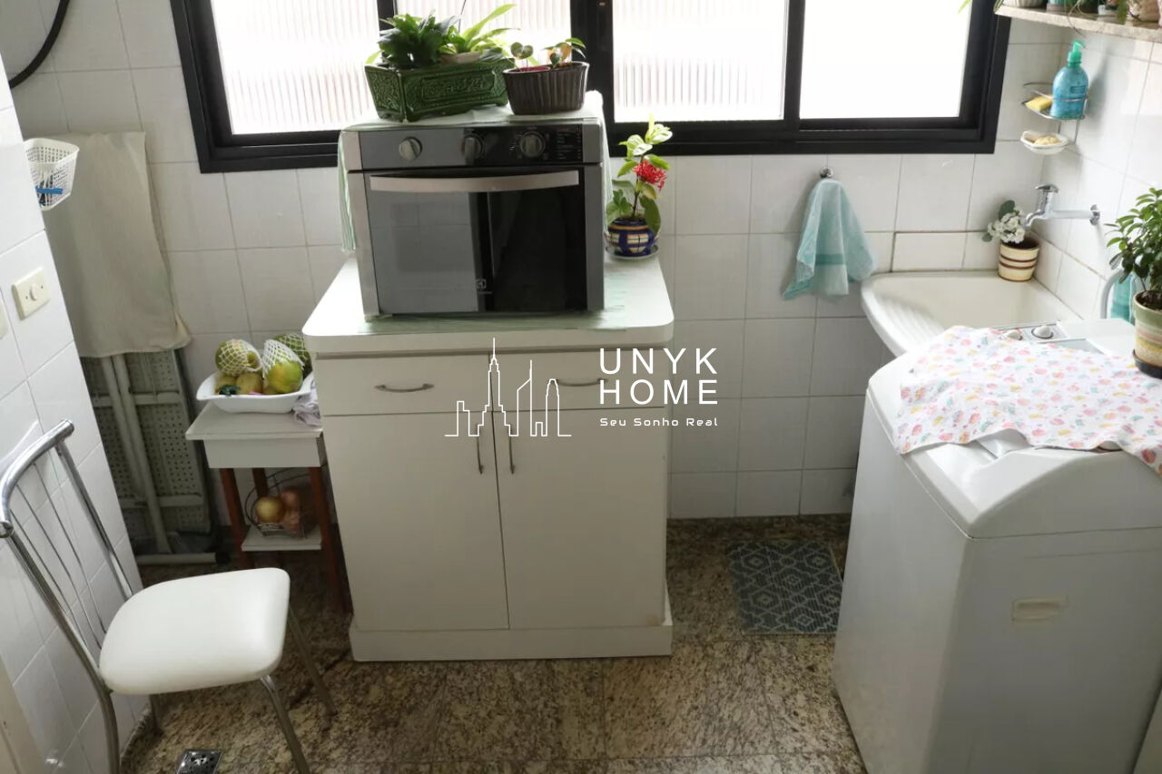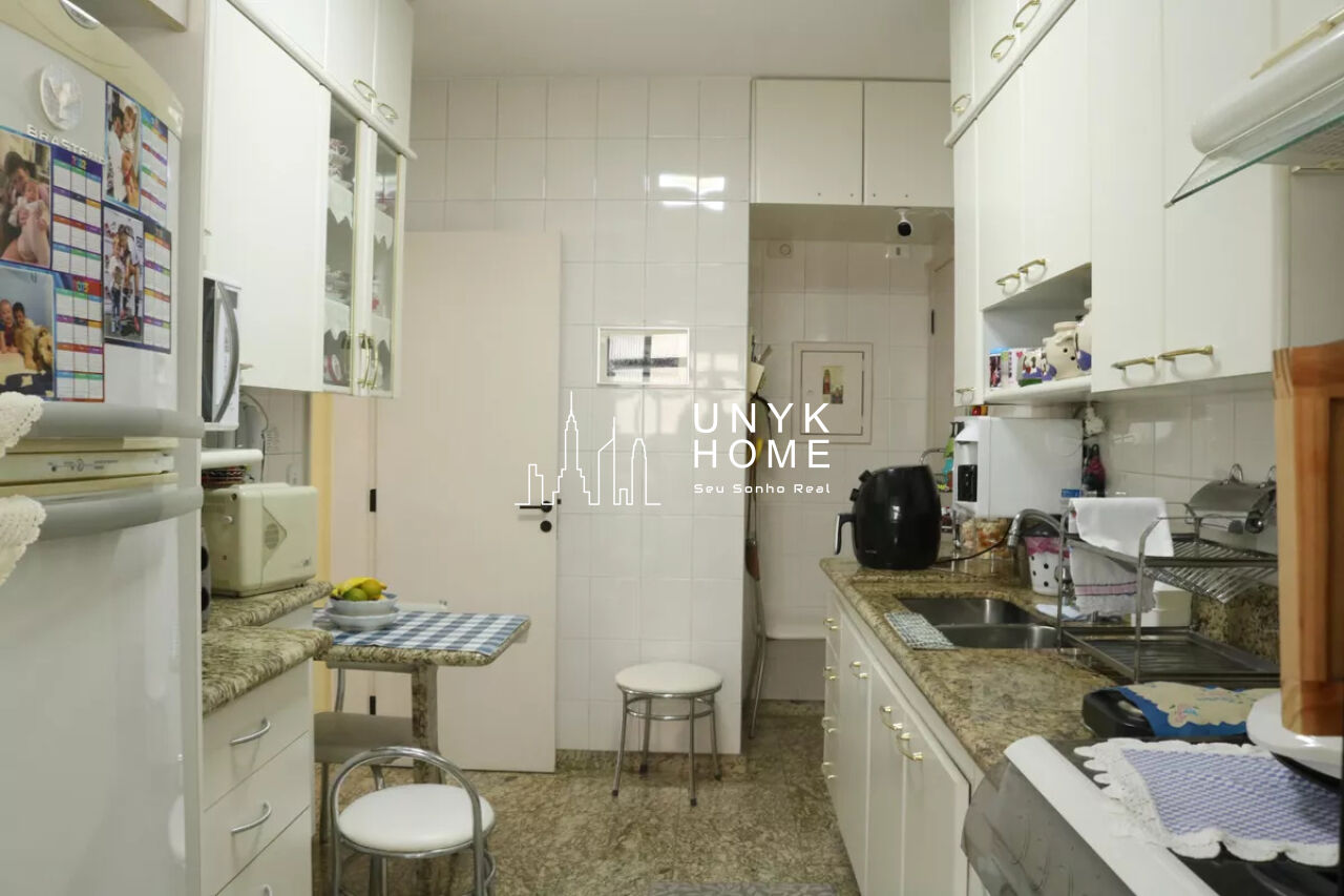 A cozinha é ampla e independente, com armários planejados, e conta também com área de serviço separada, proporcionando maior praticidade no dia a dia.