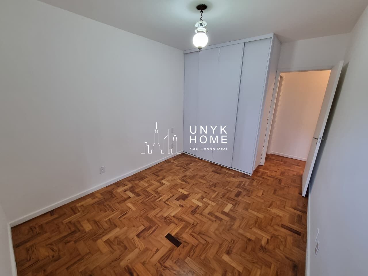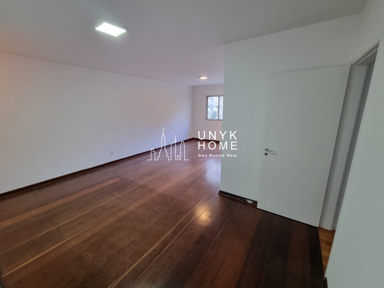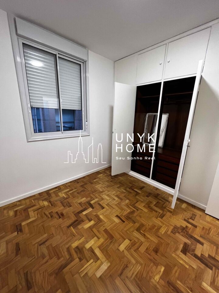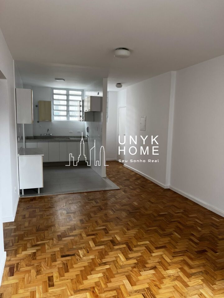 Apartamento no coração do Jardins com iluminação natural e piso de madeira.