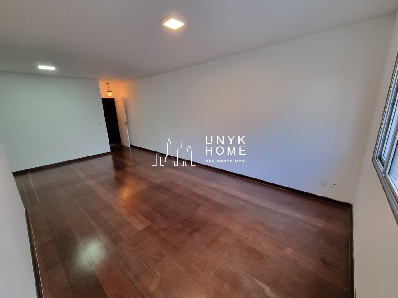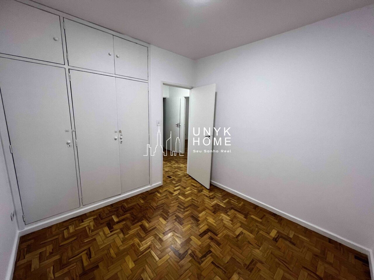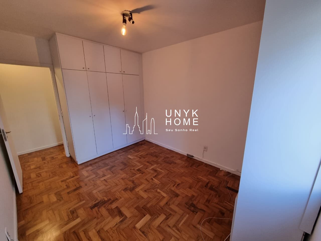 Apartamento no coração do Jardins com iluminação natural e piso de madeira.