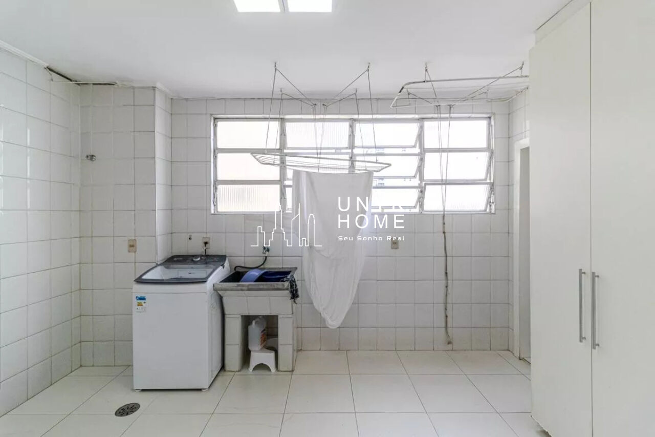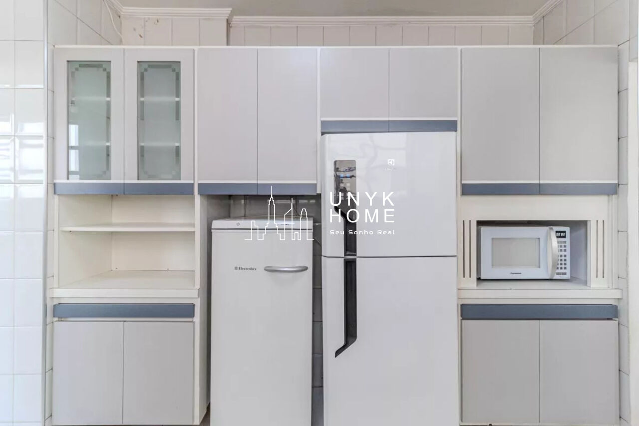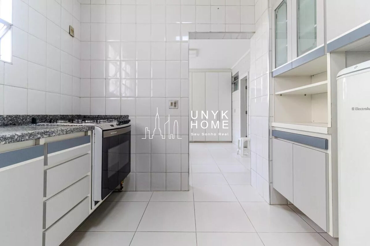 A cozinha, equipada com armários planejados, integra-se perfeitamente à área de serviço com dependência de empregada. O ar-condicionado garante o clima ideal em qualquer estação.