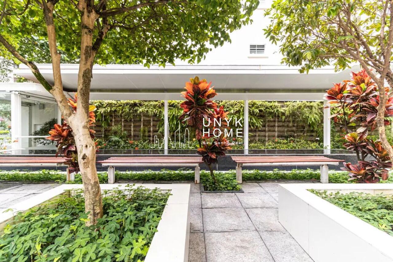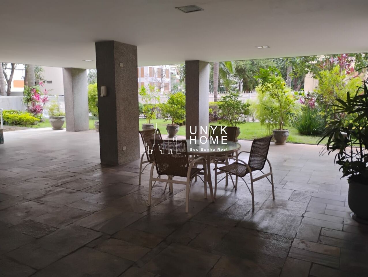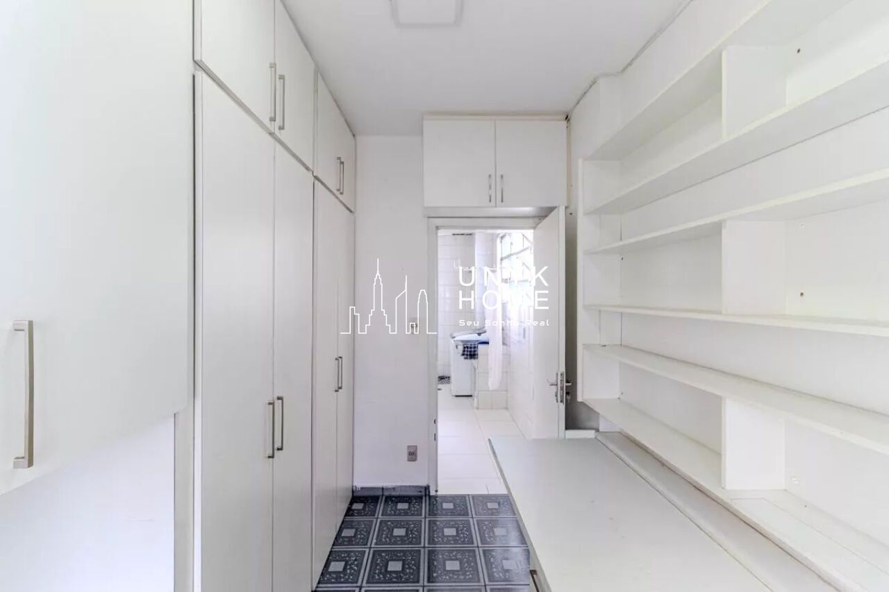 A cozinha, equipada com armários planejados, integra-se perfeitamente à área de serviço com dependência de empregada. O ar-condicionado garante o clima ideal em qualquer estação.