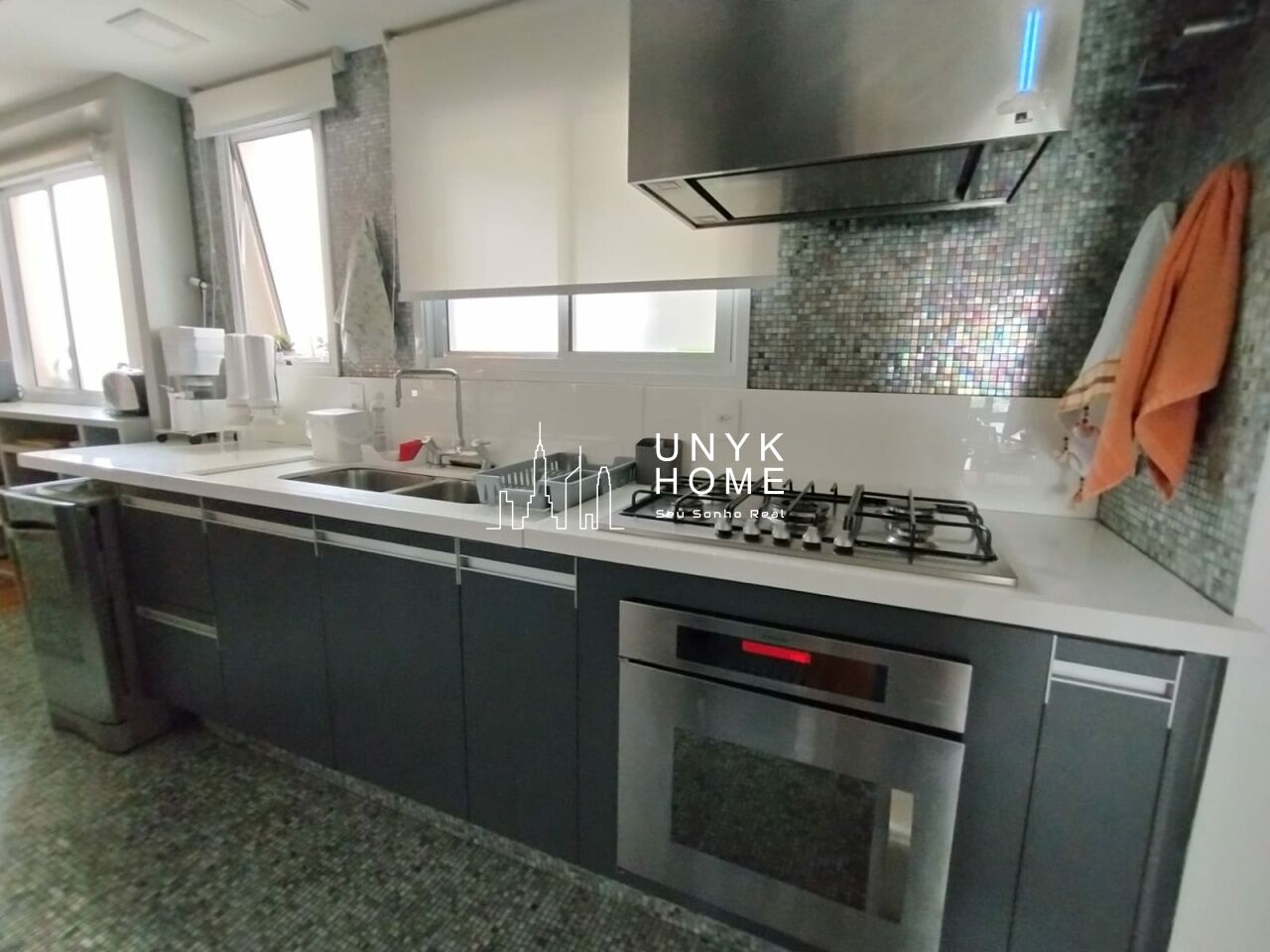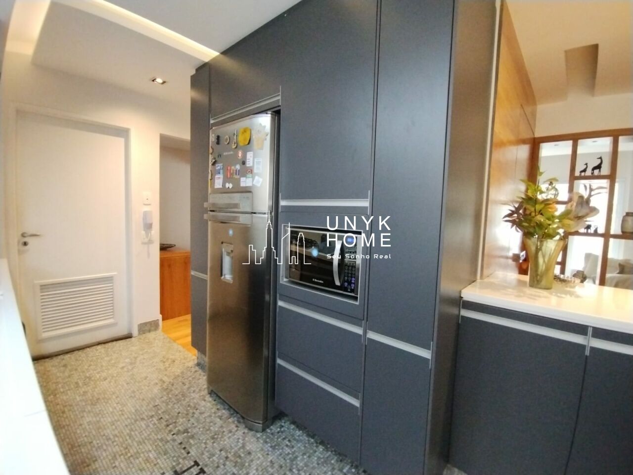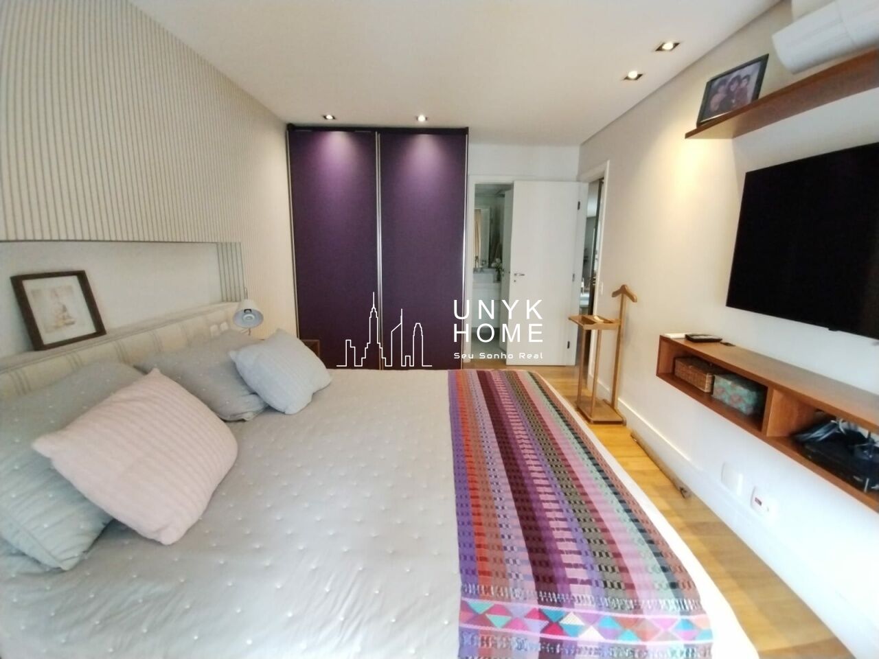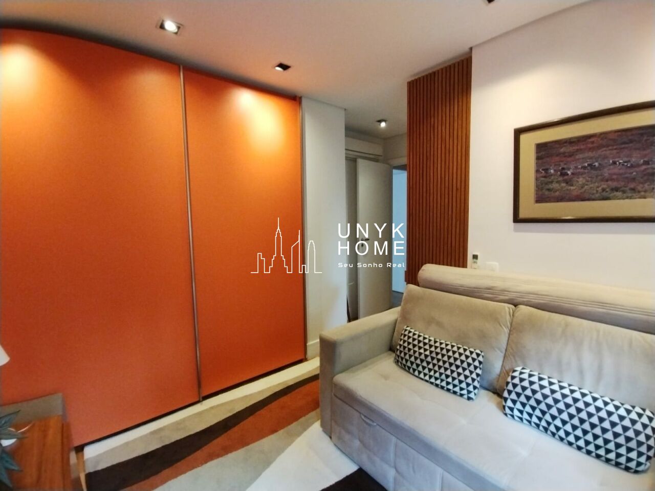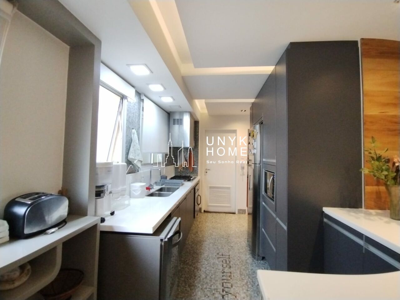 A área íntima conta com duas suítes confortáveis, incluindo um amplo closet, além de ar-condicionado e muitos armários planejados que garantem organização e funcionalidade em todos os ambientes. A cozinha é espaçosa e bem equipada, ideal para quem gosta de cozinhar com conforto. O apartamento dispõe ainda de 2 vagas de garagem e depósito privativo.