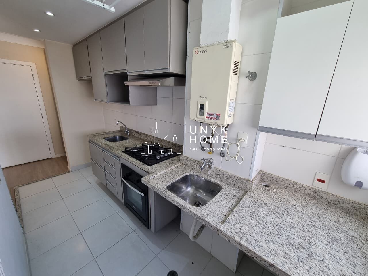 A cozinha conta com armários em todos os ambientes, cooktop, forno inclusos, além de área de serviço independente.