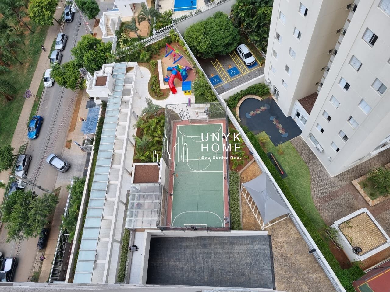 O condomínio é completo, com piscina de excelente padrão, playground, churrasqueira, quadra esportiva, academia, salão de festas totalmente equipado, espaço gourmet, brinquedoteca, salão de jogos, área verde, elevador, portaria 24 horas e infraestrutura de acessibilidade, incluindo rampas, corrimão e vaga acessível.