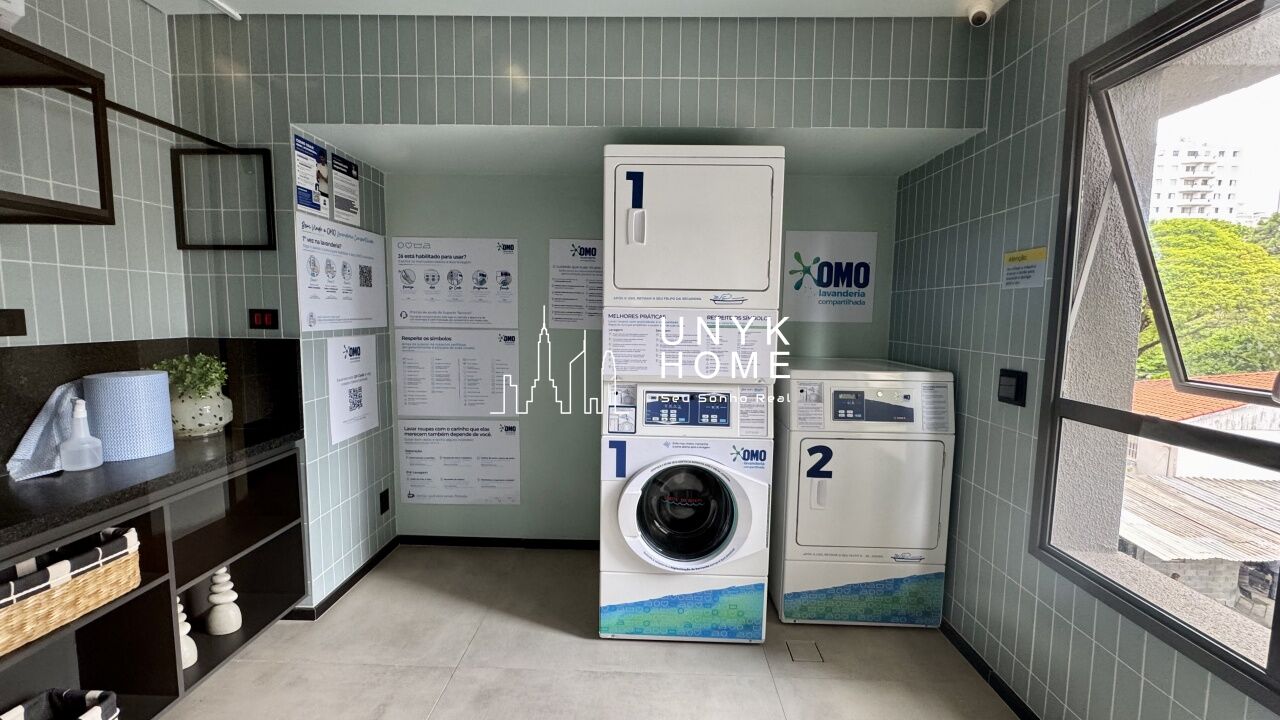 O condomínio conta com portaria 24 horas, elevador, academia, piscina e lavanderia coletiva, trazendo praticidade para a rotina urbana.