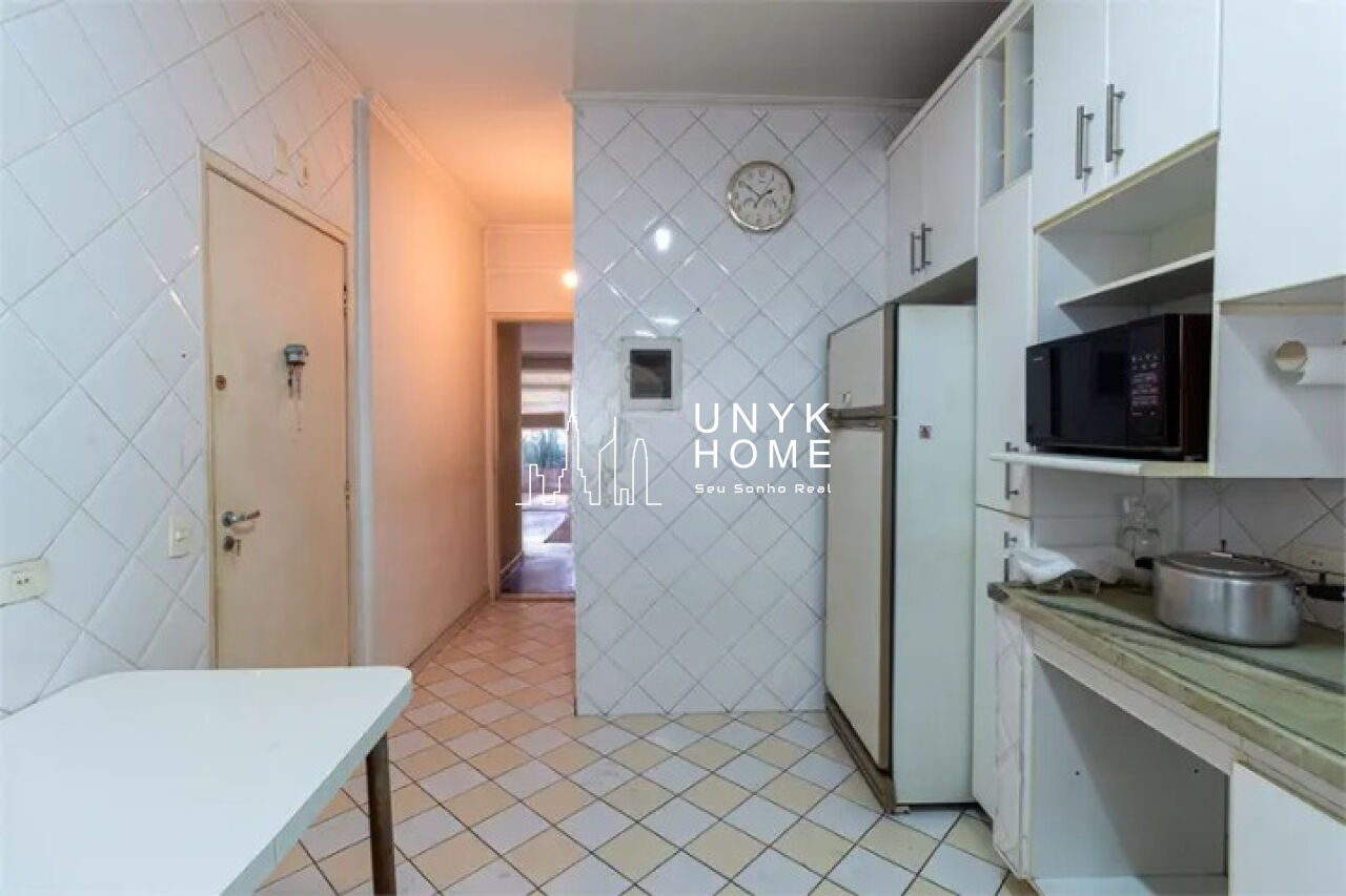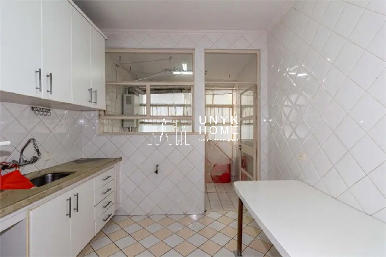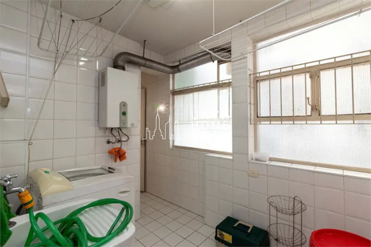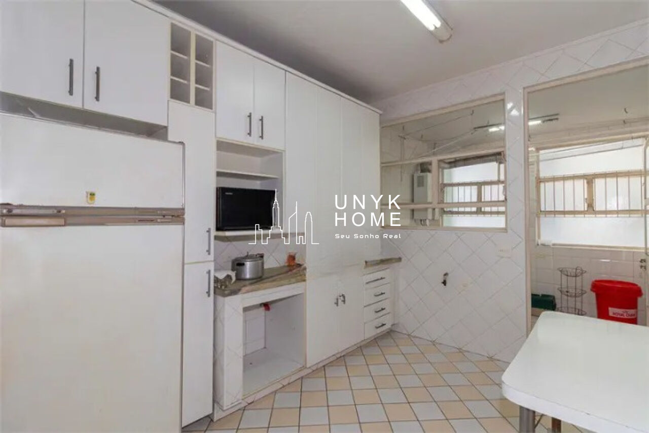 Cozinha ampla e iluminada com área de serviço, quarto de funcionários e banheiro.