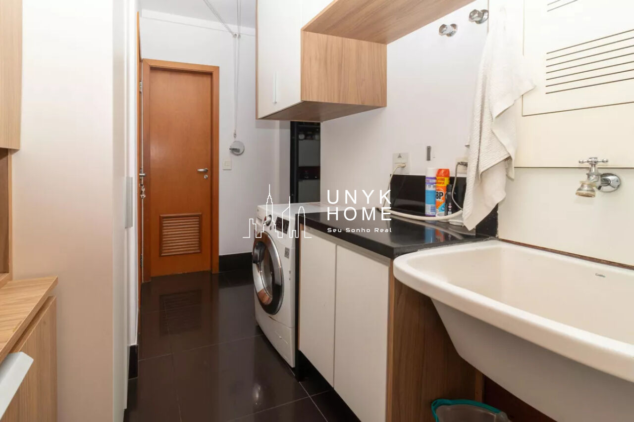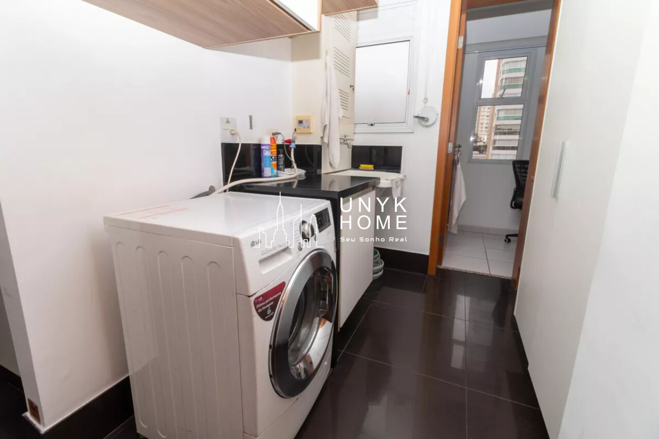 A área de serviço é funcional e inclui dependência completa de empregados, com quarto e banheiro, além de depósito privativo.