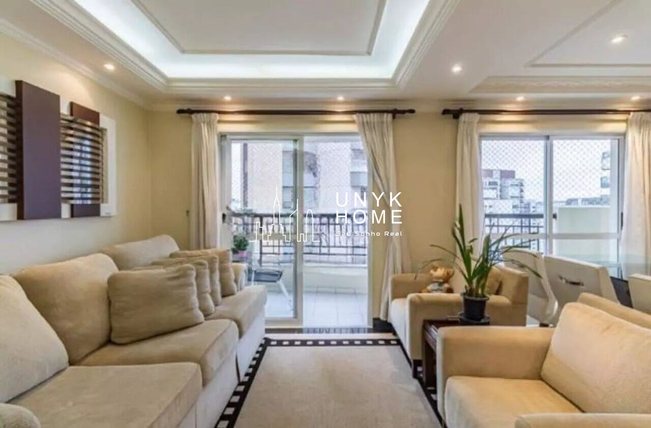 Apartamento à venda, 125m² de área útil, 3 dormitórios (2 suítes, sendo a principal com closet e banheira), (planta original com 4 dormitórios, mas um foi aberto para ampliar a sala, com fácil reversão), sala ampla com varanda e piso em porcelanato de alta qualidade, lavabo, copa e cozinha com armários planejados e despensa, área de serviço bem ventilada, 3 vagas de garagem + depósito individual.