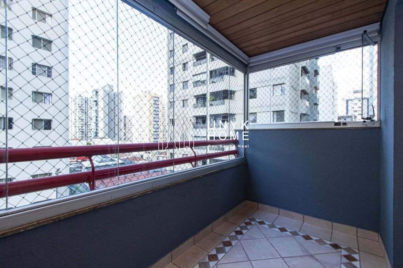 A sala se integra a uma agradável varanda com fechamento em vidro, permitindo aproveitar o ambiente em qualquer época do ano, com mais conforto e luminosidade natural.