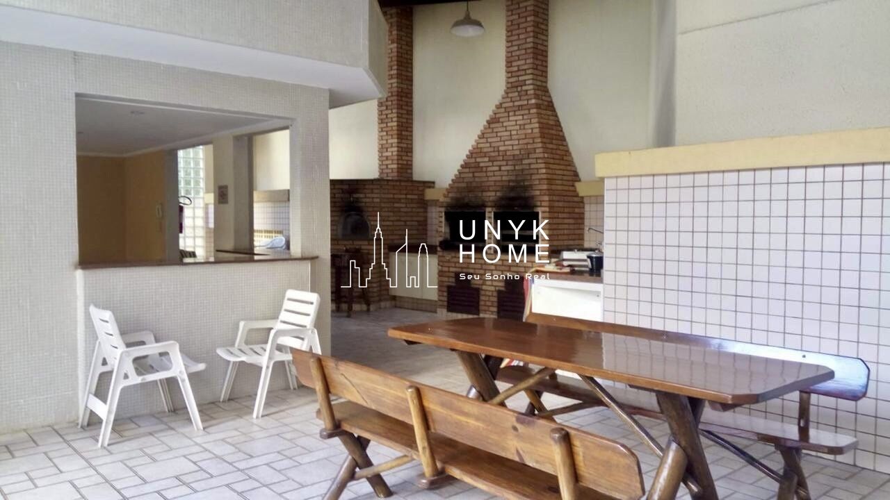 O condomínio oferece lazer e conforto: portaria 24 horas, elevador, academia, piscina, salão de festas, churrasqueira e gás encanado.