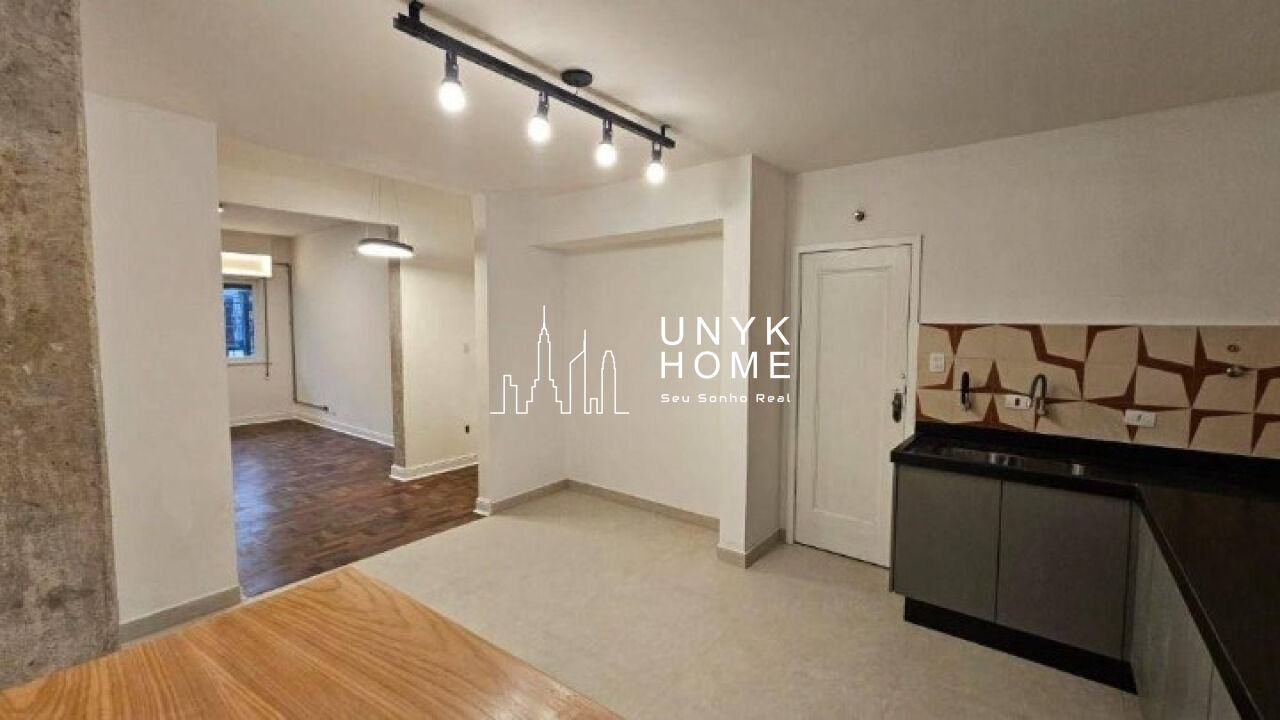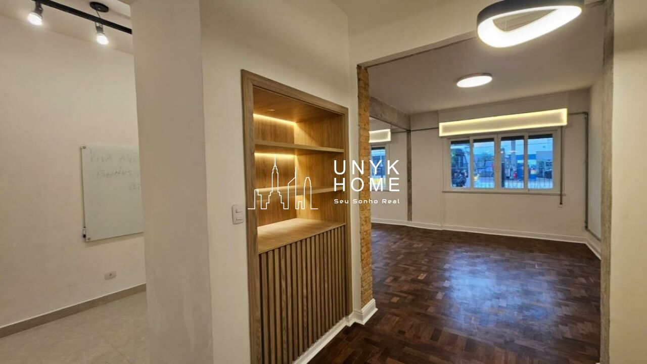 Este apartamento todo reformado com finos acabamentos está localizado no coração de Higienópolis. Luminosidade natural, pé direito alto, com piso de madeira, lustres, lavabo e janelões.